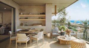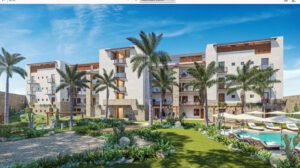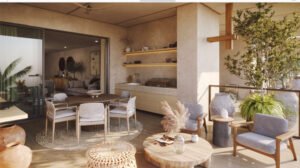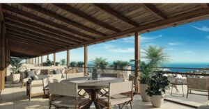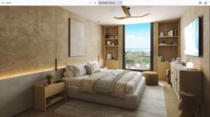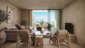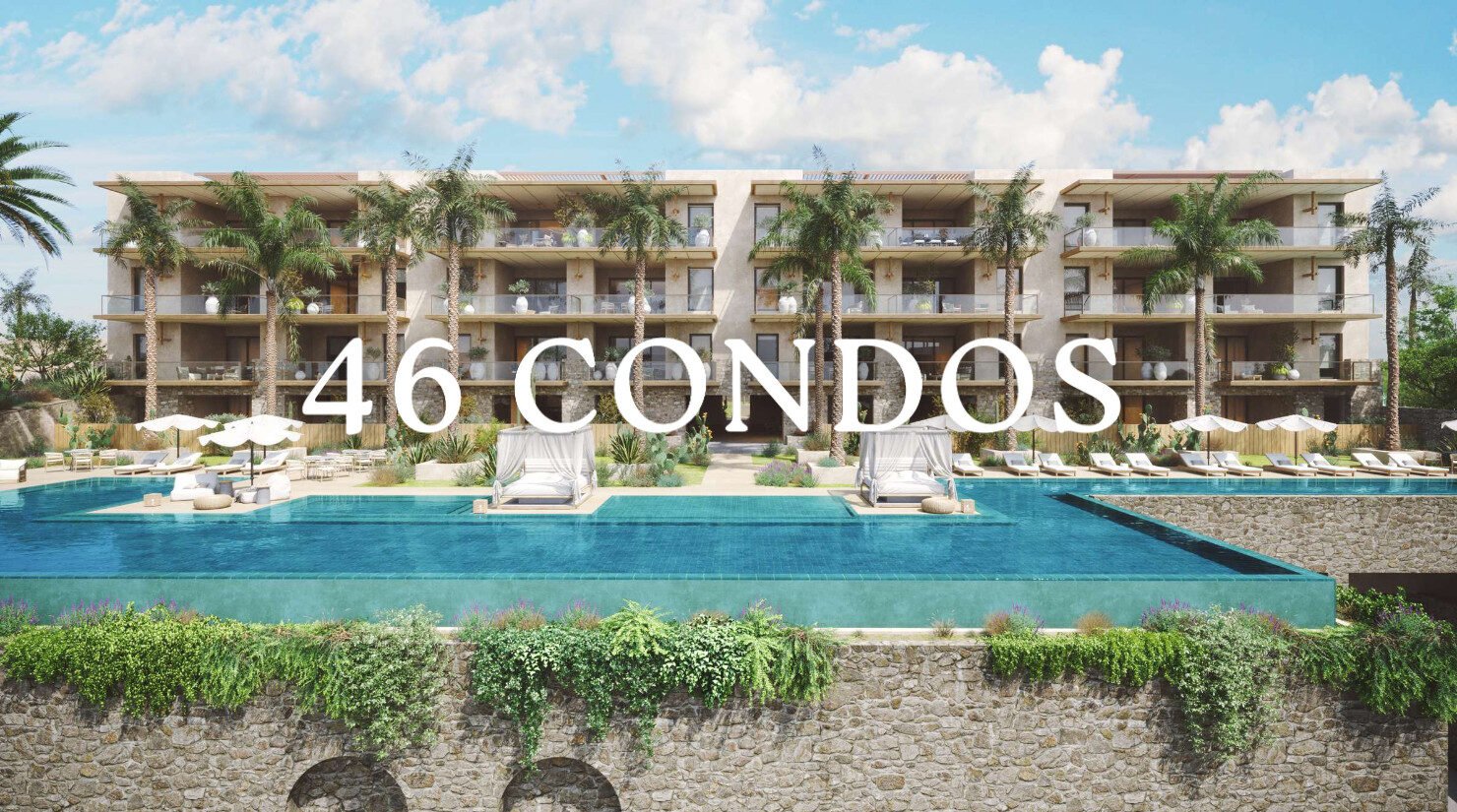 Prompt: Resort-style community in Los Cabos with pool, yoga pavilion, modern gym, and desert-ocean scenery. Fractional Ownership – Luxury Condo